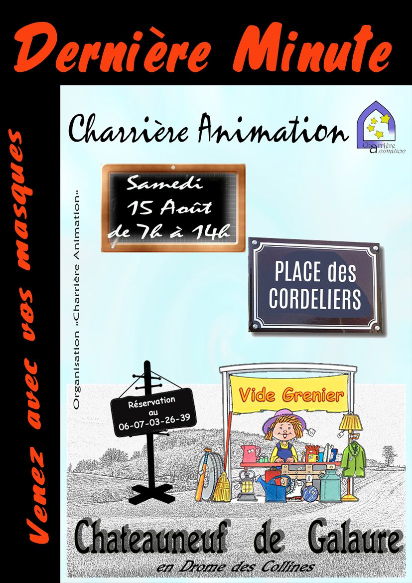 Vide-grenier du 15 août maintenu à CHARRIÈRE...soyez masqués! Publié le 8 août 2020 par Irène Publicité